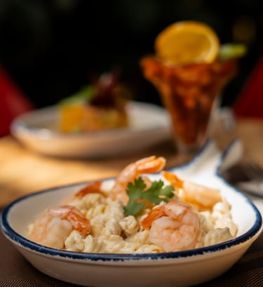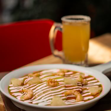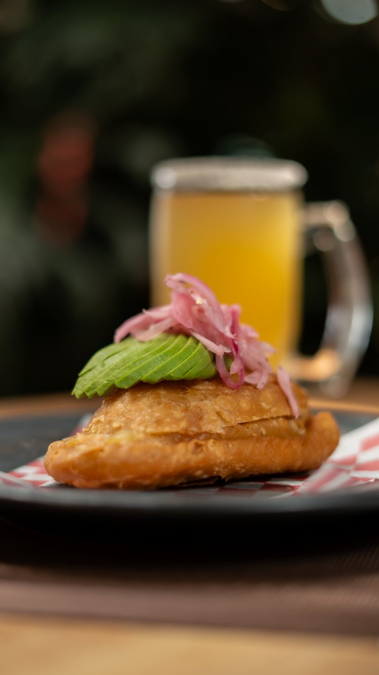 Tradicional empanada de masa de hojaldre rellena de camaron y queso, con un toque de pico de gallo y aguacate.
