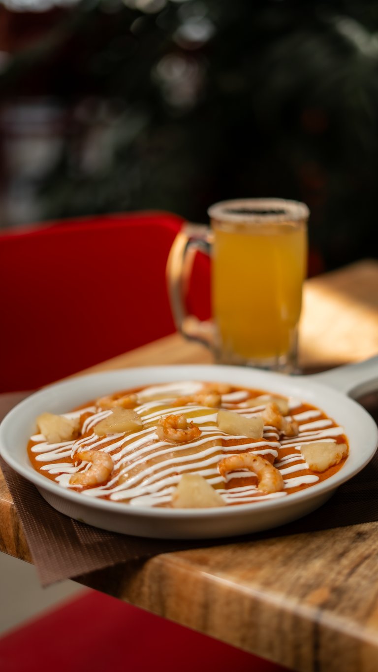 Enchiladas hawaianas con camarón.