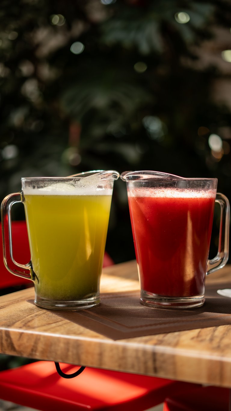 Agua de piña con menta. agua de frutos rojos.