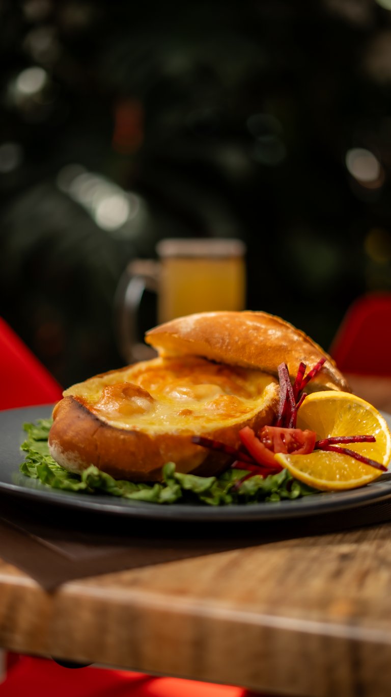 Hamburguesa de camarón.