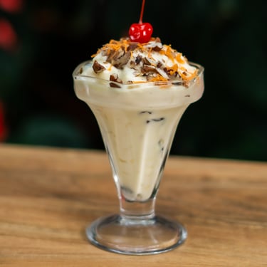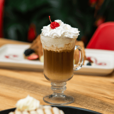 Carga de café, whiskey, kahlúa, crema batida y cereza.